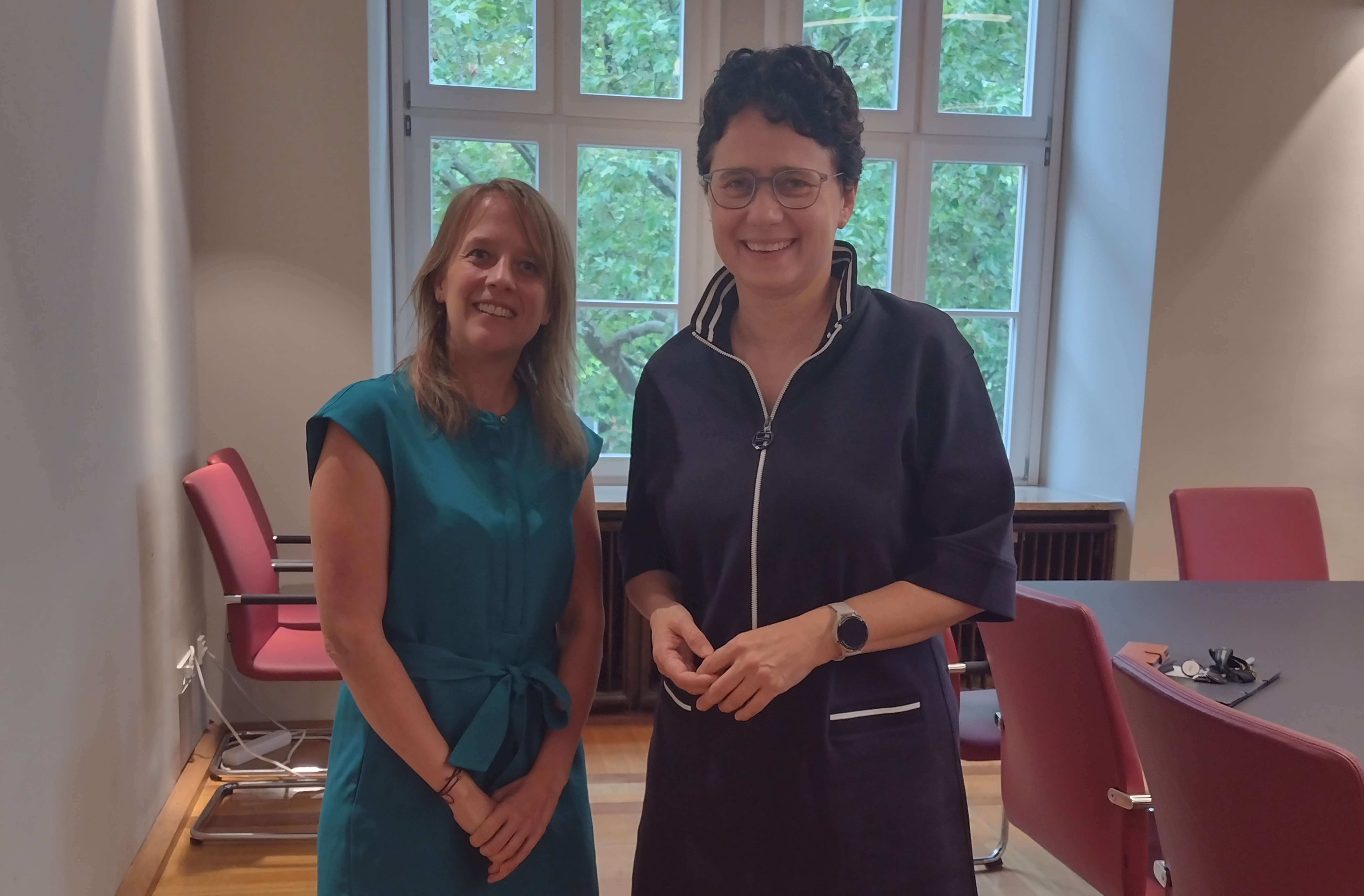 Justizministerin Marion Gentges (rechts) heißt unsere Kollegin Yvonne Morick als Vertreterin der BGBW im Kuratorium